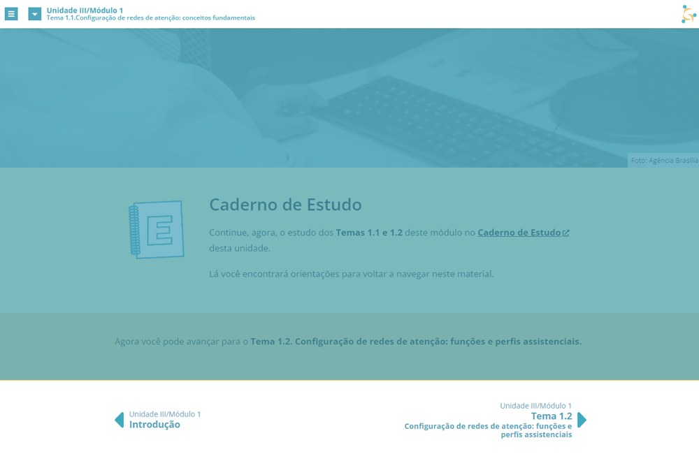 No rodapé de todas as páginas deste material didático digital, você encontrará os botões de navegação sequencial com as opções para voltar à página anterior ou navegar para o próximo tema, módulo ou unidade.