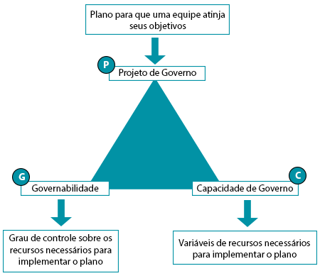 A capacidade de governo (C) diz respeito à experiência, às habilidades e à acumulação de conhecimentos técnicos necessários para implementar o plano. É o “sei como fazer”.