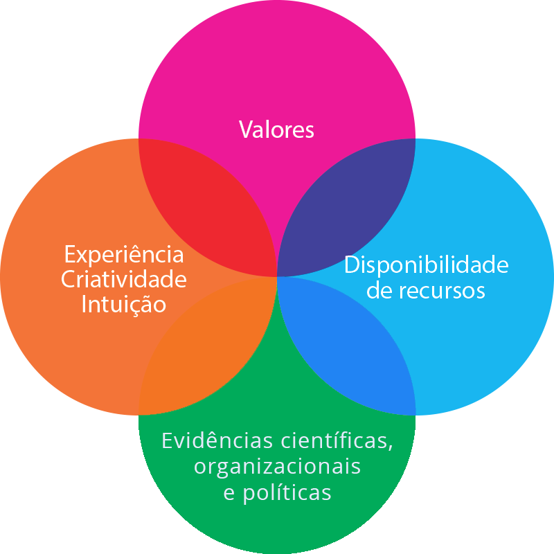 A superação da prática do desencadeamento de ações aleatórias e dispersas, a partir de ideias superficiais e orientações difusas, exige dos profissionais em geral, e dos gerentes em especial, a tomada de decisão e a coordenação de projetos de intervenção (para resolver situações consideradas indesejáveis) baseados no contexto, na experiência, na criatividade, na intuição, mas também na utilização das evidências científicas em um ambiente de compreensão dos valores sociais e institucionais. Ou seja, além das evidências científicas, há que se ter em conta as evidências organizacionais e políticas.