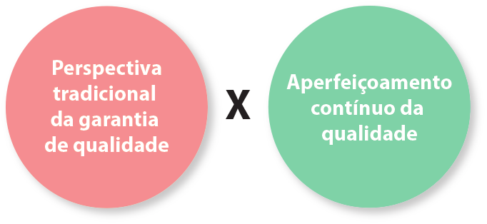 O aperfeiçoamento contínuo da qualidade contrasta com a perspectiva tradicional da garantia de qualidade, sedimentando-se sobre uma visão mais contemporânea da qualidade.