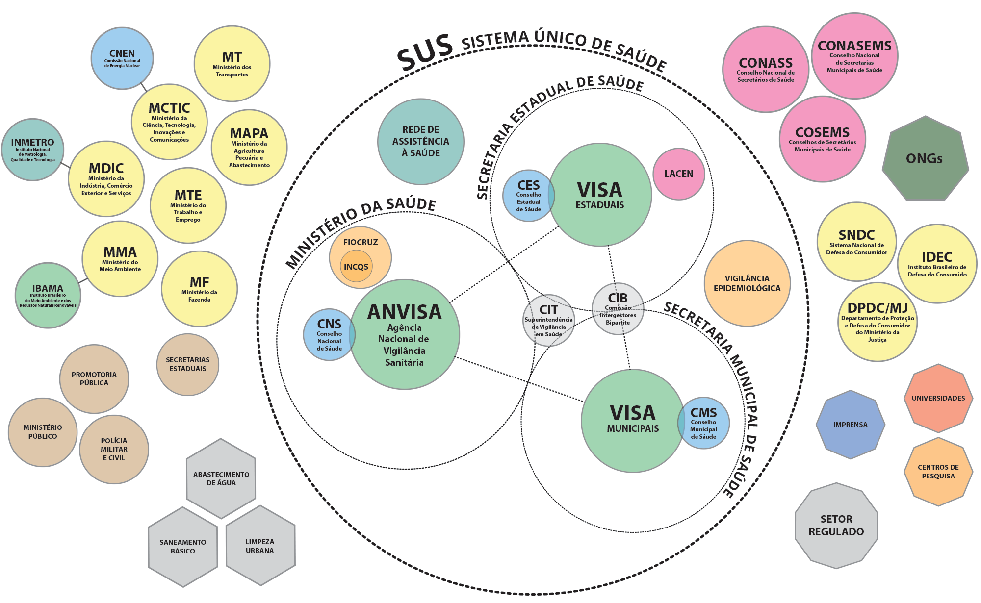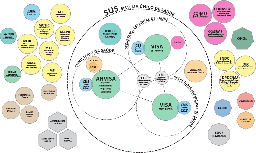 Entretanto, outras instituições do setor saúde (os conselhos de saúde, as instâncias de pactuação do SUS) bem como órgãos extra-setoriais (Sistema Nacional de Defesa do Consumidor) e instituições de outros ministérios com atividades afins à Visa.