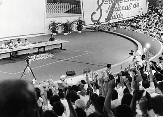 Com a criação do SUS, aqui representada pela 8ª Conferência Nacional de Saúde (Figura 2), a vigilância epidemiológica, vista como base técnica para o planejamento das ações no sistema de saúde, teve grande expansão. Com isso, cria-se, em 1990, efetivamente, o Centro Nacional de Epidemiologia (Cenepi) como um Departamento da Funasa, pela fusão da Fundação Serviços de Saúde Pública com a Superintendência de Campanhas de Saúde Pública (Sucam) e incorporação de algumas áreas das secretarias do Ministério da Saúde.