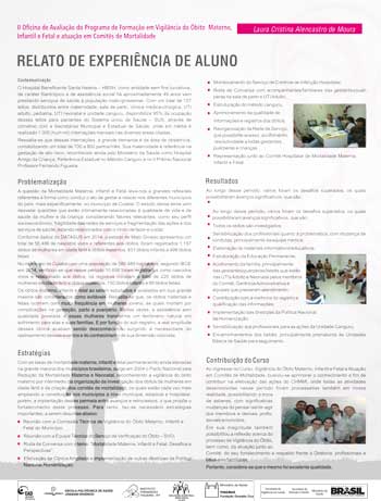 Para os alunos egressos, a proposta era avaliar como o curso ajudou em sua qualificação profissional. Eles destacaram a qualidade do material, com uma revisão ampla e atualizada sobre os diversos temas que influenciam os eventos de mortalidade materna, infantil e fetal e a metodologia adotada nos estudos de casos, que permitiu a contextualização do conhecimento de forma prática. Outro ponto relevante foi a ênfase dada ao capítulo sobre a invisibilidade do óbito fetal.