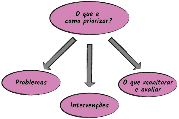 A priorização em saúde pública engloba problemas, intervenções e o que deve ser monitorado e avaliado. Vamos apresentar, agora, algumas alternativas para a priorização.